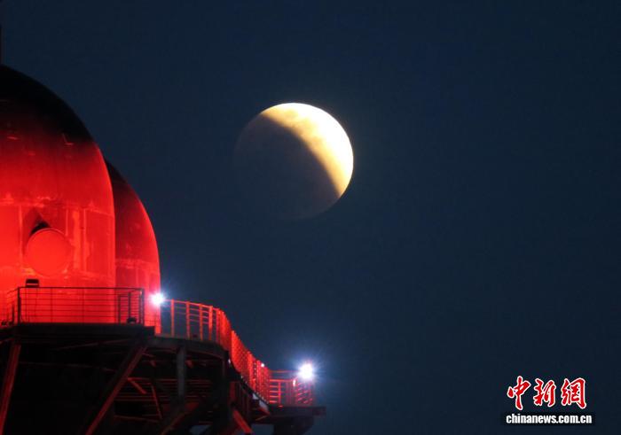 3月3日,北京首鋼園,元宵節(jié)月全食的“紅月亮”。中新網(wǎng)記者 孫自法 攝