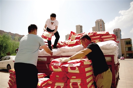 聽說這批物資是捐贈給學(xué)校的,拉載物資的工人以及尚宇的朋友、家人紛紛前來幫助搬運,“我們帶著120袋優(yōu)質(zhì)大米、200袋面、100箱有機蔬菜,慰問高新一中辛勤的老師,這是尚宇以個人的名義捐贈的。老師們無微不至地為學(xué)生付出,在這個特殊時期,希望通過慰問來表達(dá)對老師們的敬意?!北簧杏畹男袨楦袆?,前來幫助搬運物資的李聰亮介紹。