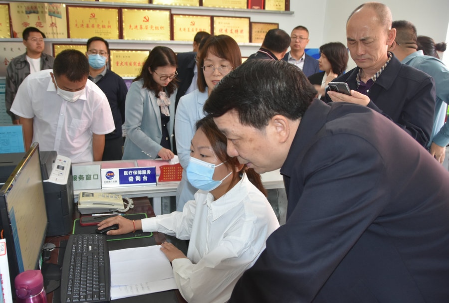 在包頭市青山區(qū)自由路街道基層醫(yī)保服務(wù)站,調(diào)研組觀摩了站里三級(jí)幫辦、四色戶卡分類、五種方式厚植服務(wù)等便民欄,查看了咨詢引導(dǎo)區(qū)、休息等待區(qū)、窗口受理區(qū)、便民服務(wù)區(qū)和自助服務(wù)區(qū)各項(xiàng)經(jīng)辦業(yè)務(wù)的開展情況等。