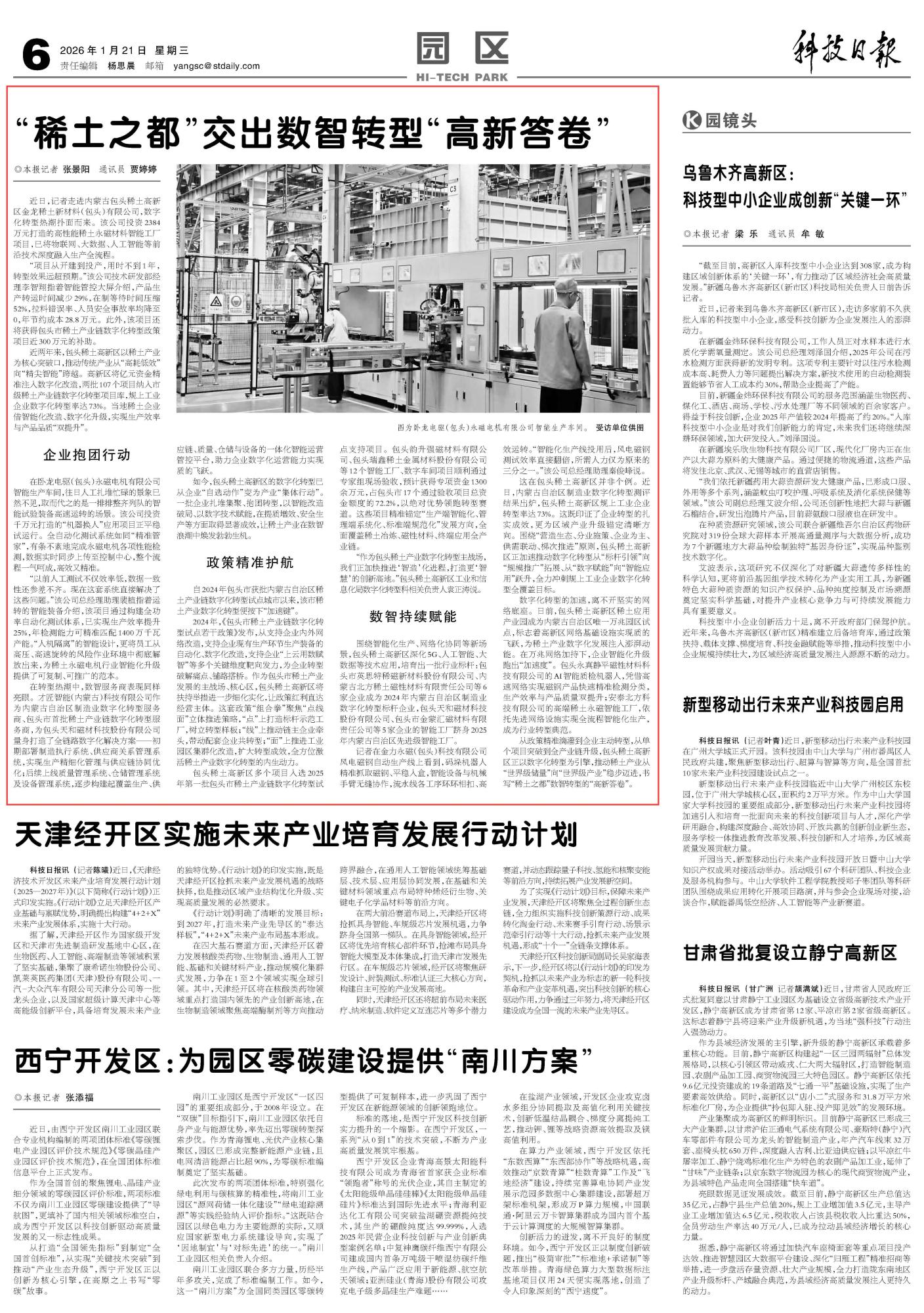 2026年1月21日《科技日報》第6版刊發(fā)了《“稀土之都”交出數(shù)智轉型“高新答卷”》的文章,報道了從政策精準滴灌到企業(yè)主動轉型,從單個項目突破到全產業(yè)鏈升級,包頭稀土高新區(qū)正以數(shù)字化轉型為引擎,推動稀土產業(yè)從“世界級儲量”向“世界級產業(yè)”穩(wěn)步邁進,書寫“稀土之都”數(shù)智轉型的“高新答卷”。