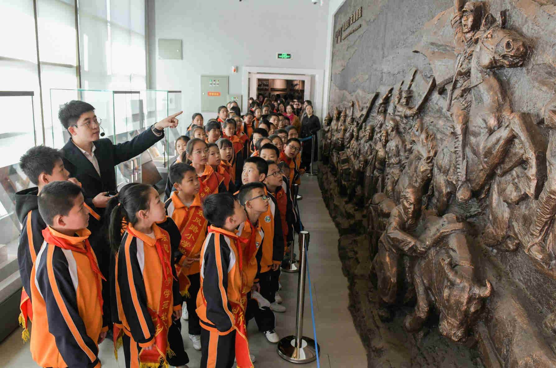 3月30日,講解員為小學(xué)生們講述革命故事。當(dāng)日,呼和浩特市賽罕區(qū)東風(fēng)路小學(xué)學(xué)苑校區(qū)在烏蘭夫紀(jì)念館開展了一場主題為“緬懷先烈告慰英雄做時代新人”的教育實(shí)踐活動。孩子們在聆聽革命故事、學(xué)習(xí)革命先烈光榮事跡中,接受了一次生動的愛國主義教育。(內(nèi)蒙古日報社融媒體記者 懷特烏勒斯攝)  3月30日,講解員為小學(xué)生們講述革命故事。當(dāng)日,呼和浩特市賽罕區(qū)東風(fēng)路小學(xué)學(xué)苑校區(qū)在烏蘭夫紀(jì)念館開展了一場主題為“緬懷先烈告慰英雄做時代新人”的教育實(shí)踐活動。孩子們在聆聽革命故事、學(xué)習(xí)革命先烈光榮事跡中,接受了一次生動的愛國主義教育。(內(nèi)蒙古日報社融媒體記者 懷特烏勒斯攝)