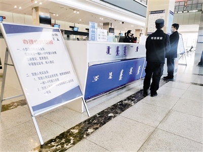 “你好!違章查詢和罰款繳納需要去交管隊,不在這里辦理。如果是本人車輛,也可下載12123 APP進行辦理?!?月18日9時10分,記者走進呼和浩特市交警支隊車輛管理所,在政務(wù)服務(wù)中心東大廳正對著大門的導辦臺,一位民警正在接受市民業(yè)務(wù)咨詢。記者看到,大廳里往日喧囂熱鬧的場景不見了,只有零星幾位市民在辦理業(yè)務(wù)。