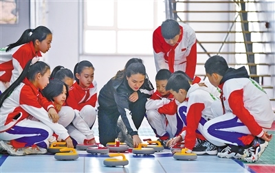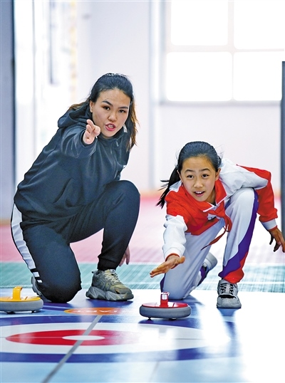 “帶動更多人愛上冰雪運動”,這是呼和浩特市錫林南路小學(xué)分校體育教師海霞的小心愿。學(xué)校在2021年6月開設(shè)旱地冰壺社團課,海霞是社團課的老師。2020年冬,呼和浩特市組織中小學(xué)體育教師冰雪項目培訓(xùn),海霞第一次真正接觸冰雪運動,并深深愛上了冰雪運動。海霞開始通過網(wǎng)絡(luò)自學(xué)冰壺項目技巧等,不斷充實專業(yè)知識。功夫不負有心人,學(xué)校社團成立僅半個月后,海霞帶領(lǐng)社團學(xué)生代表學(xué)校參加呼和浩特市中小學(xué)“冰雪運動進校園”旱地冰壺比賽,就拿到了女子組冠軍的好成績,她倍感振奮?!拔铱吹綄W(xué)生們對冰壺項目由新奇到喜歡再到喜愛,由衷高興。平時的體育課中,我也經(jīng)常給學(xué)生普及冰雪運動知識,越來越多學(xué)生甚至老師開始了解冰雪運動,我覺得自己的工作很有意義?!焙O颊f。