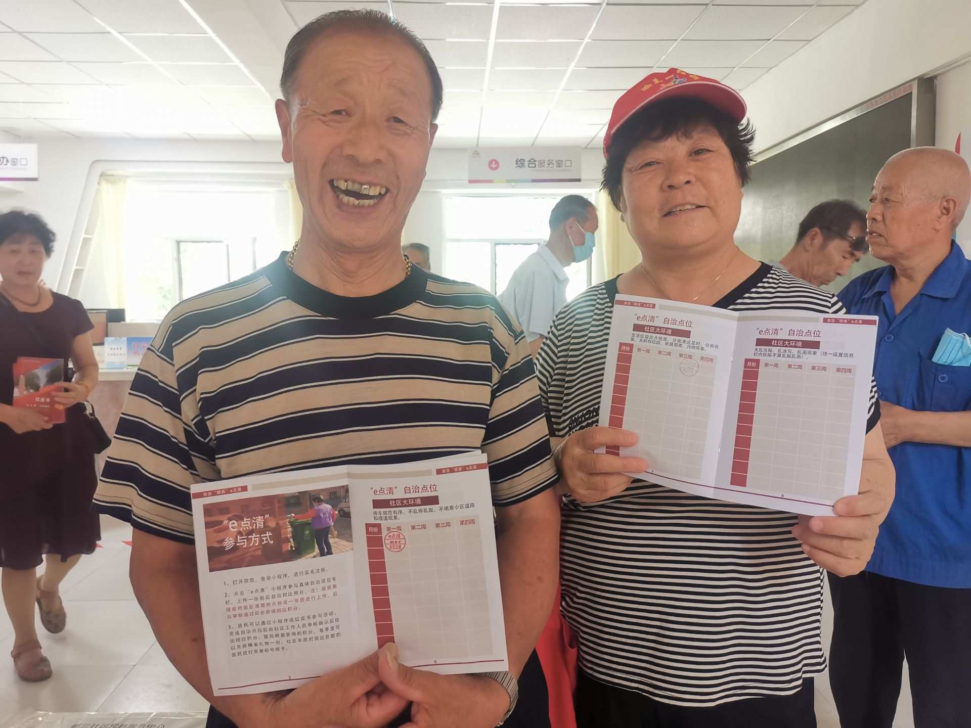 “七彩之光”志愿服務隊的隊員展示榮譽積分