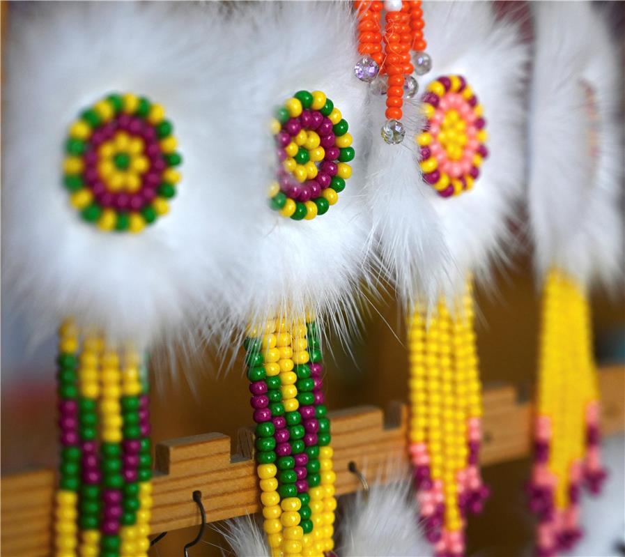“太陽(yáng)花”是鄂溫克族傳統(tǒng)手工藝品,圓心象征著太陽(yáng),四周毛針象征著陽(yáng)光,寓意著溫暖、吉祥。如今,“太陽(yáng)花”已經(jīng)成為鄂溫克族自治旗暢銷的文創(chuàng)產(chǎn)品,帶動(dòng)當(dāng)?shù)責(zé)釔蹅鹘y(tǒng)手工藝品制作的人們共同走上致富路。