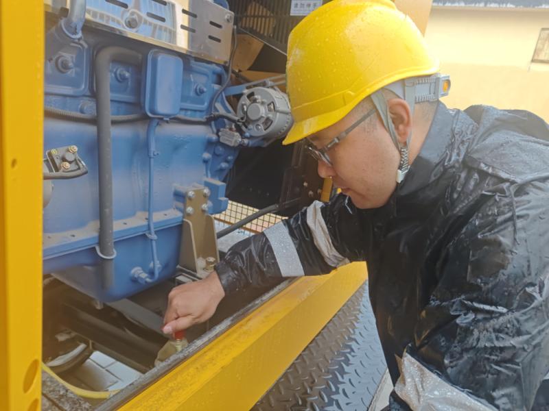 新城變電工區(qū)創(chuàng)業(yè)66千伏變電站運維人員啟動抽水車直流電源排出積水。(攝影:王磊)