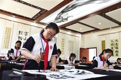 書法已成為烏海學生的必修課。 郝飚 攝