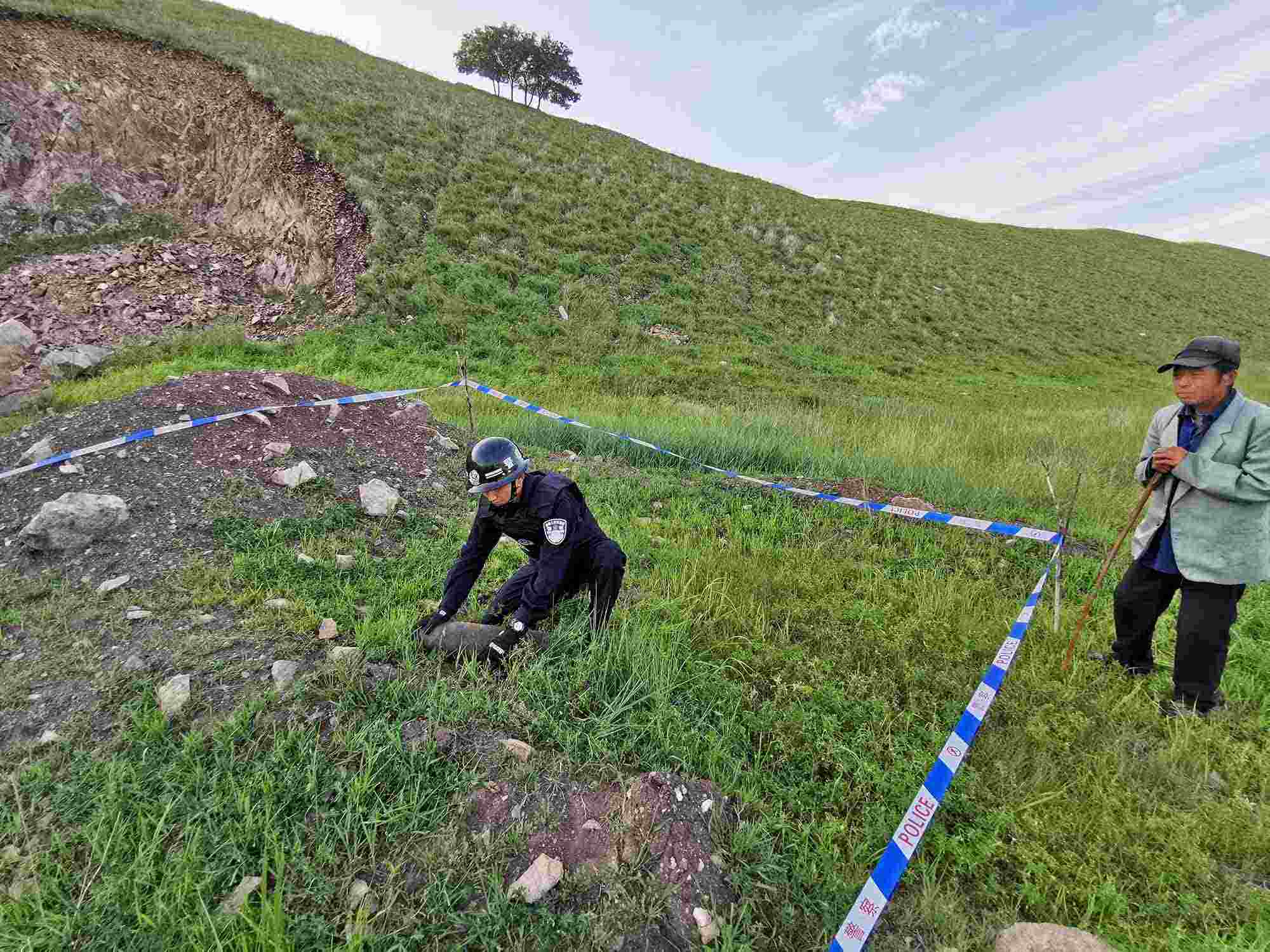 8月18日10時,阿爾山邊境派出所接到轄區(qū)群眾報警稱:在阿爾山市某山上發(fā)現(xiàn)疑似炮彈的金屬物體。民警迅速趕往指定地點(diǎn),劃定警戒區(qū)、封鎖出入通道,在現(xiàn)場很快發(fā)現(xiàn)了長約30厘米不等的3枚廢舊炮彈,經(jīng)初步勘驗(yàn),該炮彈系日軍侵華時期遺留,引信已經(jīng)損壞,但內(nèi)部裝置完好,受到劇烈撞擊仍有爆炸可能。8月19日14時,科右前旗綠水邊境派出所民警下鄉(xiāng)走訪期間,根據(jù)羊倌反映,在一處放牧包附近挖出2枚20厘米不等的廢舊炮彈和1枚手雷,炮彈的鐵質(zhì)外殼雖已生銹,但引信完好,輪廓清晰,若有牲畜踩踏仍有可能發(fā)生爆炸,具有較大的殺傷力。為徹查隱患,民警將炮彈轉(zhuǎn)至安全地帶后,對附近區(qū)域進(jìn)行了全方位排查搜索,未發(fā)現(xiàn)其他安全隱患。