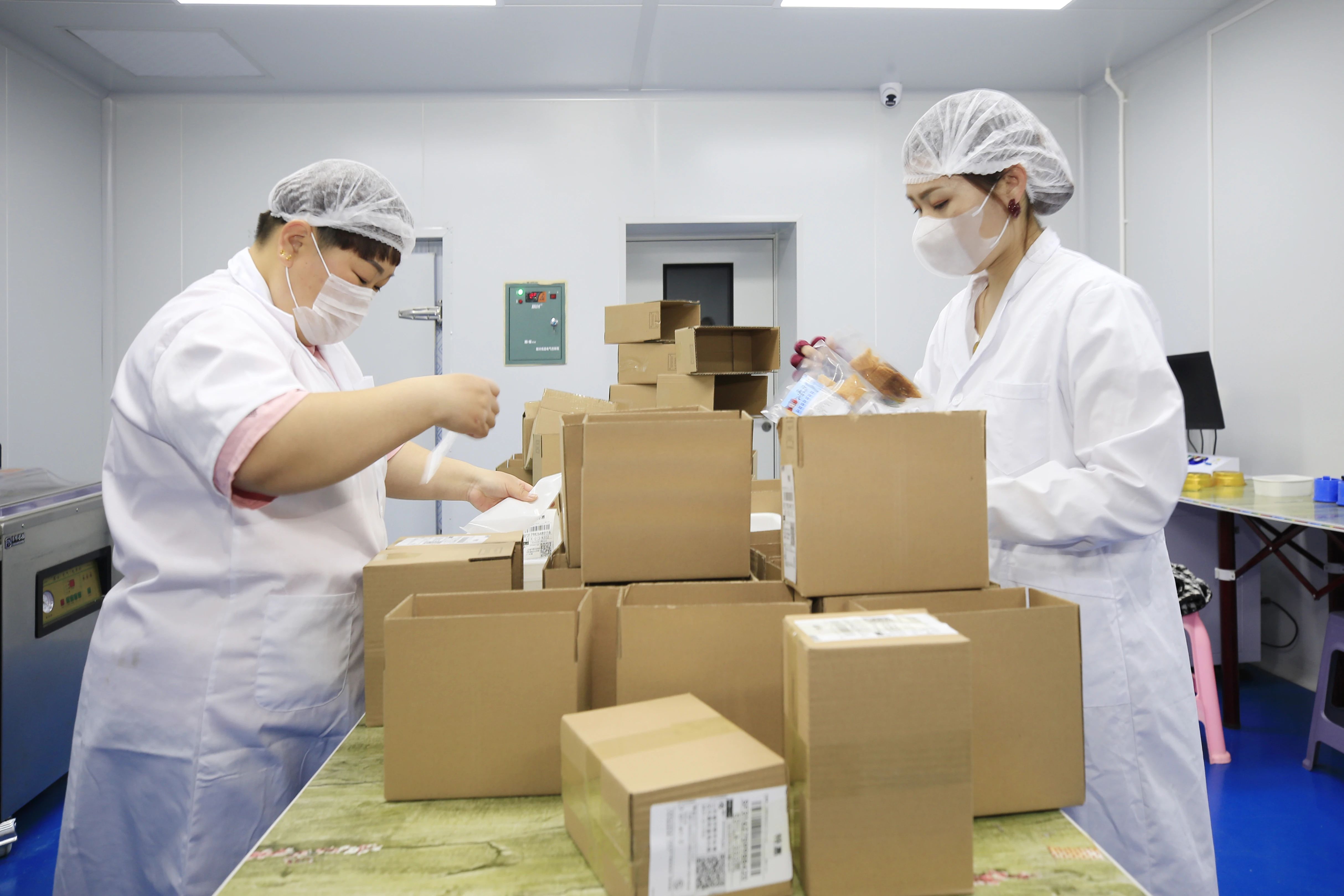興安盟印象乳業(yè)有限公司工人正在打包電商訂單