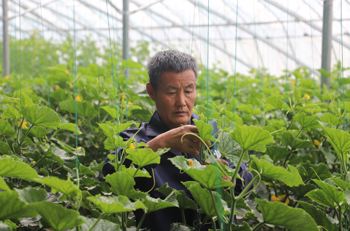 工人正在查看蔬菜生長(zhǎng)情況
