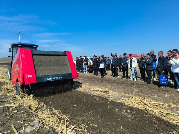 農(nóng)民在淺埋滴灌水肥一體化技術(shù)示范田學(xué)習(xí)技術(shù)
