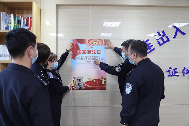 12月4日內(nèi)蒙古出入境邊防檢查總站二連出入境邊防檢查站多措并舉,扎實開展全國第四個“憲法宣傳周”活動。