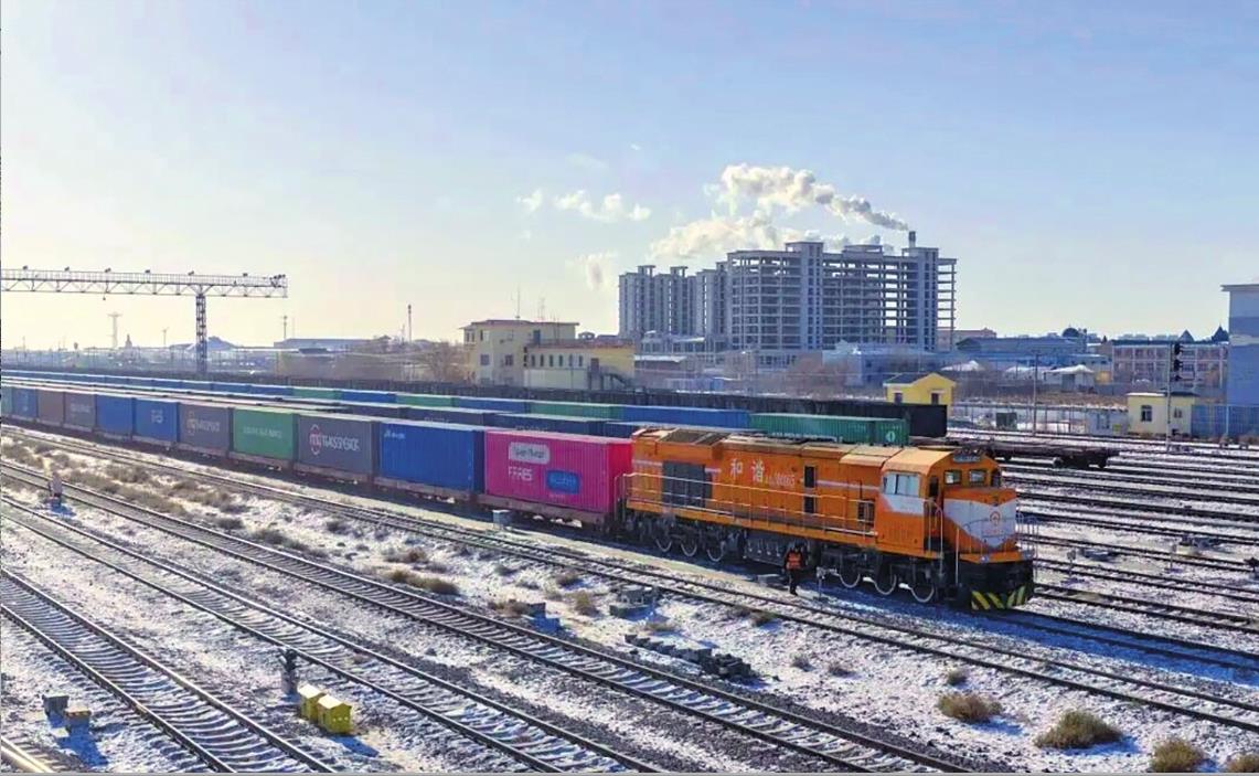 圖為一列中歐班列經二連浩特鐵路口岸出入境。(張偉)