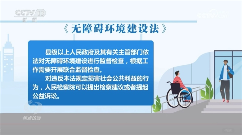有了設施建設標準、劃分了管理維護責任,這還不夠,沒有監(jiān)督,無障礙環(huán)境建設工作很難持久。在《無障礙環(huán)境建設法》中,還對“如何保障‘急難愁盼’問題得到解決”進行了規(guī)定。比如縣級以上人民政府及其有關主管部門依法對無障礙環(huán)境建設進行監(jiān)督檢查,根據(jù)工作需要開展聯(lián)合監(jiān)督檢查。對違反《無障礙環(huán)境建設法》規(guī)定損害社會公共利益的行為,人民檢察院可以提出檢察建議或者提起公益訴訟。