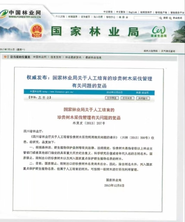 2020年3月,兩高批復(fù)明確“人工培育的植物,除古樹名木外,不屬于刑法第三百四十四條規(guī)定的‘珍貴樹木或者國家重點(diǎn)保護(hù)的其他植物’”。圖片來源/網(wǎng)頁截屏