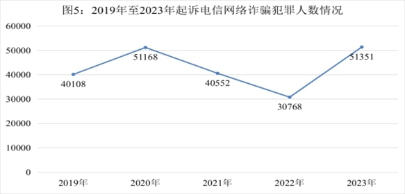 全國檢察機關共起訴電信網(wǎng)絡詐騙犯罪51351人,同比上升66.9%。受電信網(wǎng)絡詐騙犯罪高發(fā)影響,幫信罪、掩隱罪、妨害國(邊)境管理類犯罪等關聯(lián)犯罪也呈現(xiàn)上升態(tài)勢,其中,起訴幫信罪146579人,同比上升13%;起訴掩隱罪137386人,同比上升66.2%;起訴妨害國(邊)境管理類犯罪31442人,同比上升13.3%。