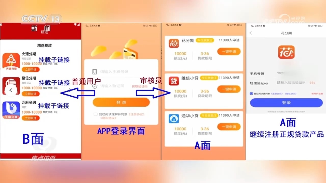安徽省蕪湖市公安局經(jīng)開區(qū)分局偵查打擊部警務技術二級主管高陽:“提供審核的都是正規(guī)的貸款產(chǎn)品,點擊以后一步一步看起來都很正規(guī),這樣審核員就會通過,覺得這個APP是正常的,可以在官方應用商城上架。但是普通用戶登錄以后,就會下載新的APP,新的APP都是詐騙APP。”