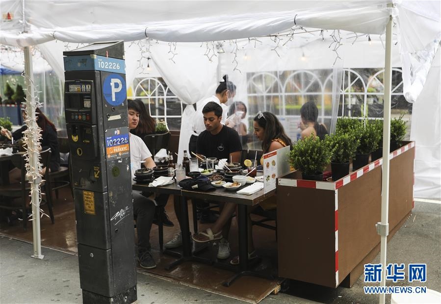 7月23日,在美國紐約,人們在戶外就餐區(qū)用餐。美國約翰斯·霍普金斯大學(xué)23日發(fā)布的新冠疫情最新統(tǒng)計(jì)數(shù)據(jù)顯示,美國累計(jì)確診病例超過400萬例。數(shù)據(jù)顯示,截至美國東部時(shí)間23日15時(shí)34分(北京時(shí)間24日3時(shí)34分),美國累計(jì)確診病例4007859例,累計(jì)死亡病例143846例。新華社記者王迎攝