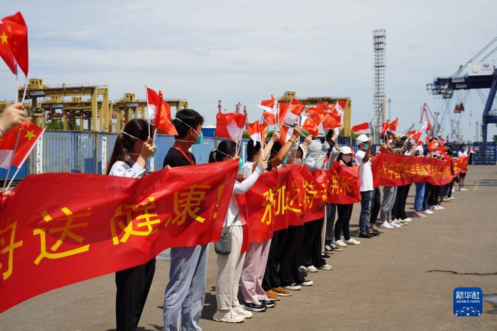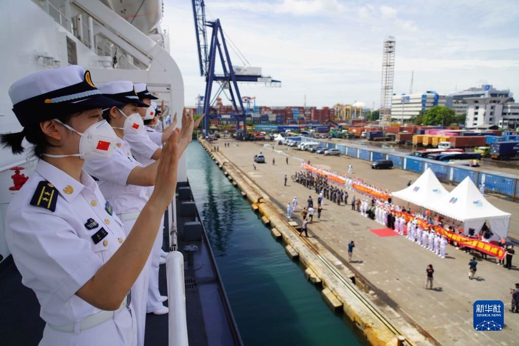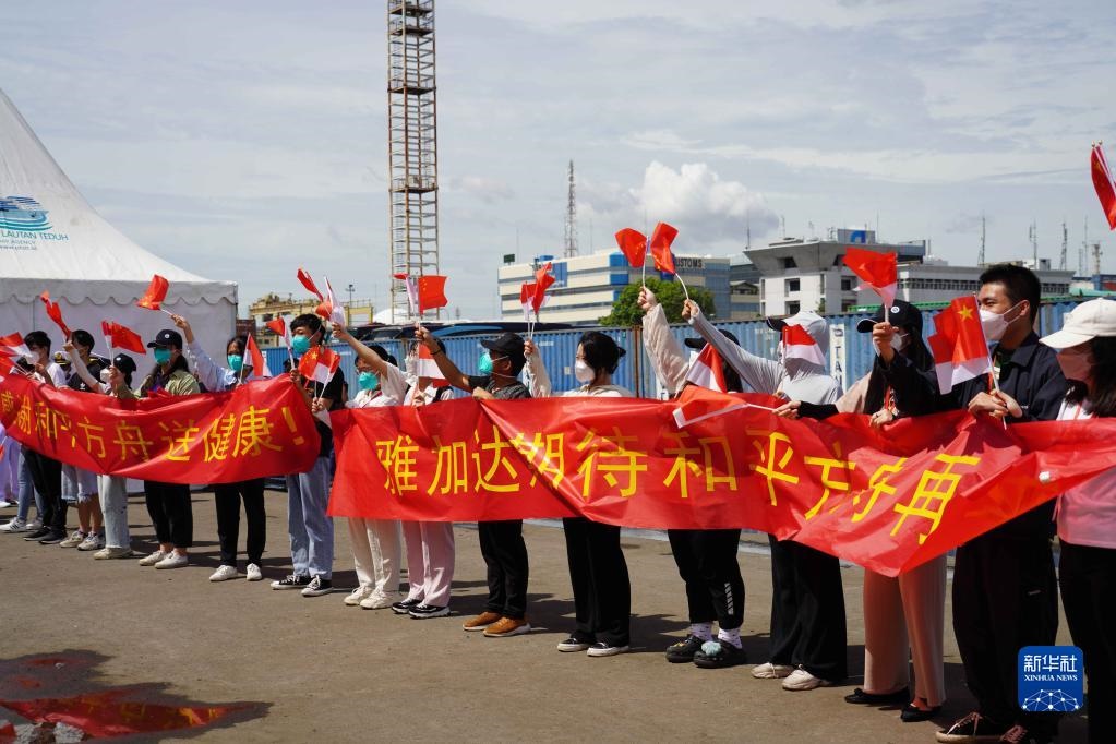 當(dāng)日,印尼海軍和當(dāng)?shù)孛癖?,以及中國駐印尼使館工作人員和中資機(jī)構(gòu)、華僑華人代表等在碼頭送行。離開碼頭后,“和平方舟”號醫(yī)院船還與印尼海軍“三寶壟”號醫(yī)院船進(jìn)行了聯(lián)合通信、燈光旗語、編隊航行等課目演練。