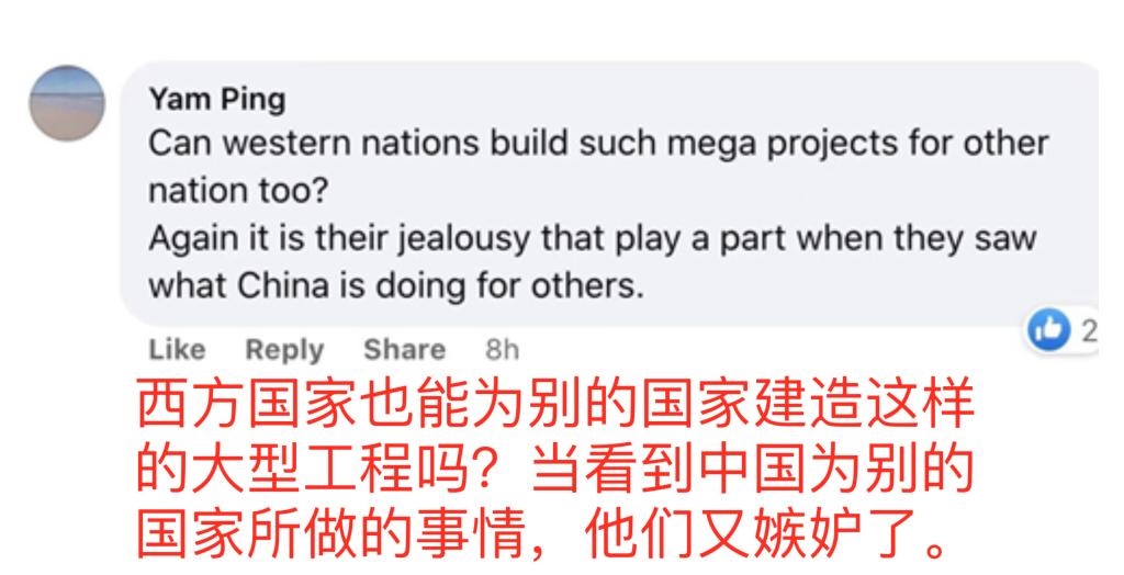 網(wǎng)友亞姆·平說:“西方國家也能為別的國家建造這樣的大型工程嗎?當看到中國為別的國家所做的事情,他們又嫉妒了?!?/p>