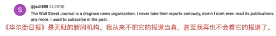 網(wǎng)友@jsch888說:“《華爾街日報》是無恥的新聞機構(gòu)。我從來不把它的報道當真,我甚至再也不會看它的報道了?!?/p>