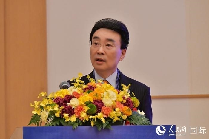 在日中國(guó)企業(yè)協(xié)會(huì)會(huì)長(zhǎng)王家馴致辭。人民網(wǎng) 滕雪攝