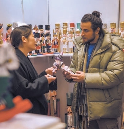 2023年2月24日,一名外商(右)正在中國(臺州)“一帶一路”跨國采購對接會上了解產(chǎn)品。章勇濤攝(人民視覺)