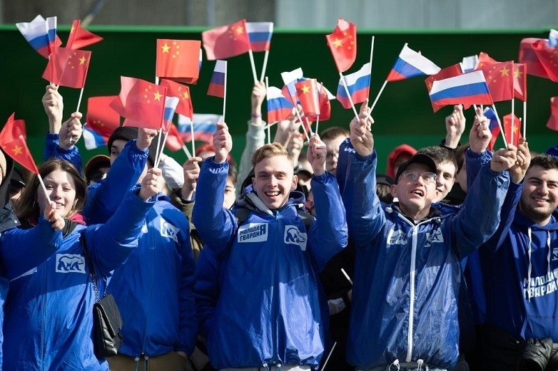 在中國領(lǐng)導(dǎo)人下榻酒店附近,眾多俄羅斯青年和中國留學(xué)生、中企員工、華僑華人熱情揮舞著兩國國旗?!盁崃覛g迎”的口號(hào),同俄語的歡呼聲,交織在一起。