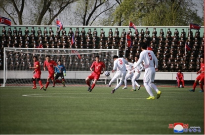 報(bào)道稱,首先進(jìn)行了朝鮮內(nèi)閣和國防省職員的足球比賽,兩隊(duì)攻防激烈,最終以1:1戰(zhàn)平,隨后進(jìn)入了點(diǎn)球大戰(zhàn),國防省隊(duì)以5:3力克內(nèi)閣隊(duì)。