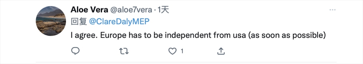 “我同意。歐洲必須從美國獨立出來(盡快)?!薄?/p>