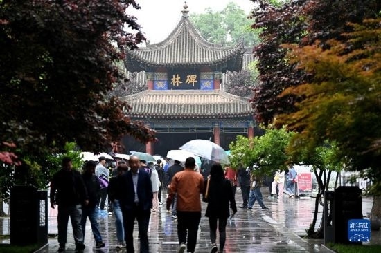 5月9日,游客在西安碑林博物館內(nèi)參觀(guān)游覽。