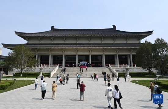 5月8日,游客在西安博物院參觀(guān)游覽。