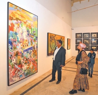 人們在埃及首都開羅參觀“藝匯絲路——中阿知名藝術家采風作品展”。新華社記者 隋先凱攝