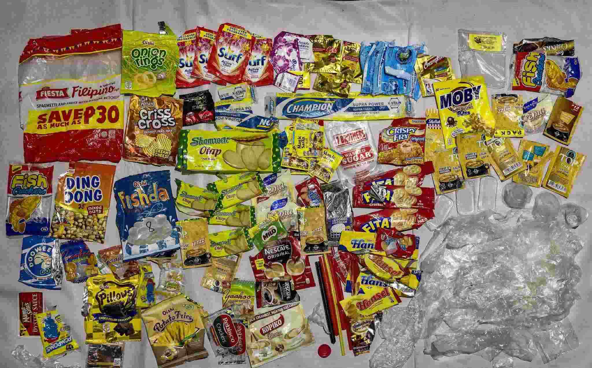當(dāng)?shù)貢r間2023年4月20日,菲律賓馬尼拉,奎松市,Mercado家在一周內(nèi)產(chǎn)生的塑料垃圾。