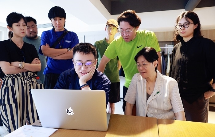 這張照片美好動人,充滿著彼此尊重、珍愛的師生情誼。能夠精準地捕捉到這樣稍縱即逝的人物情感交流,一方面離不開老師的扮演者,中國白蘭地首席大師張葆春在劇中的本色出演,另一方面也顯然得益于拍攝之前田雨峰進行的背景調(diào)查和資料準備工作。向張葆春老師請教釀酒知識,了解“學(xué)生”文文(錢冬旎飾)對角色和人物關(guān)系的理解,這些細致、瑣碎甚至看起來不甚必要的準備過程,是最終劇照能在觀眾面前精準呈現(xiàn)、動人表達的必要條件。