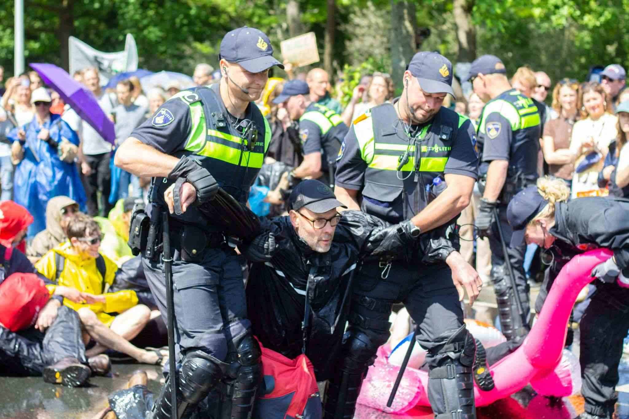 當(dāng)?shù)貢r間2023年5月27日,荷蘭海牙,警察在封鎖A12高速公路的抗議活動中驅(qū)逐“反抗滅絕”活動人士,他們反對荷蘭政府提供的化石燃料補(bǔ)貼。