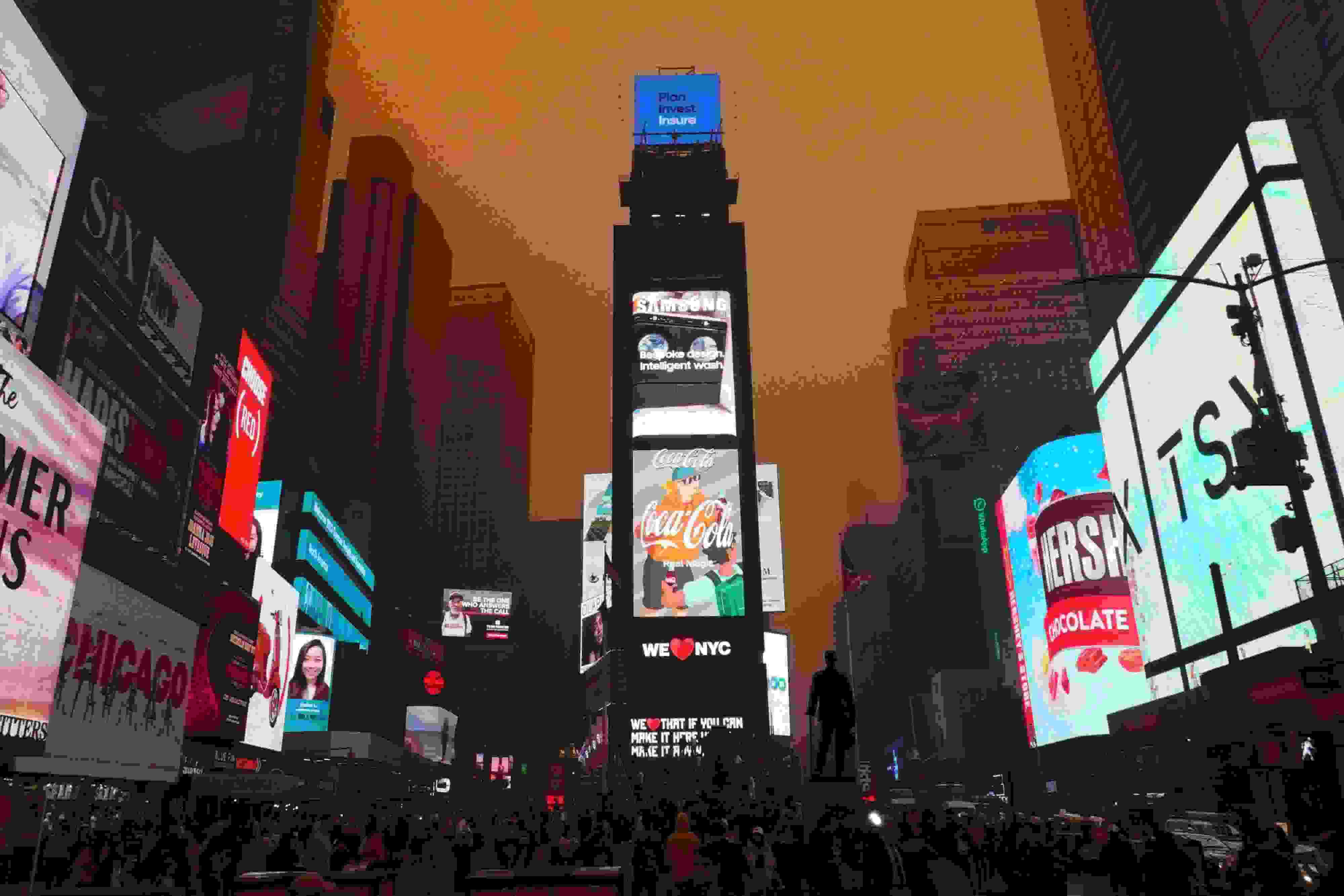 當?shù)貢r間2023年6月7日,受加拿大野火煙霧持續(xù)南下影響,美國紐約籠罩在“橙色霧霾”中。當天,紐約成為全球空氣污染最嚴重的城市。 視覺中國