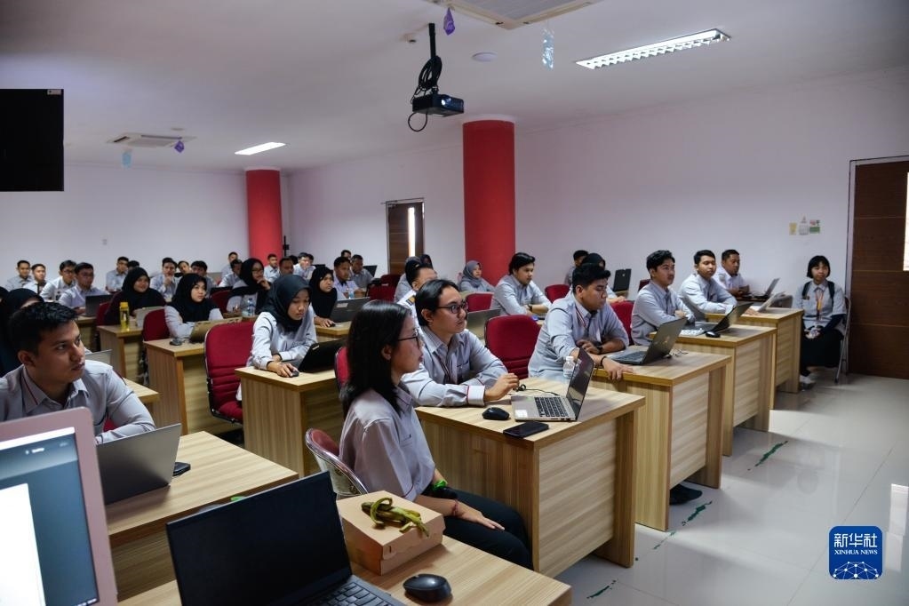 6月7日,在位于印度尼西亞茉莉芬市的印尼鐵路理工學(xué)院,學(xué)員在接受雅萬高鐵運(yùn)行控制中心調(diào)度人員培訓(xùn)。