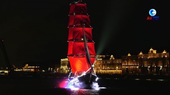 24日深夜,圣彼得堡為慶祝中學(xué)生畢業(yè)準(zhǔn)備的年度大型活動“紅帆節(jié)”如期舉行。