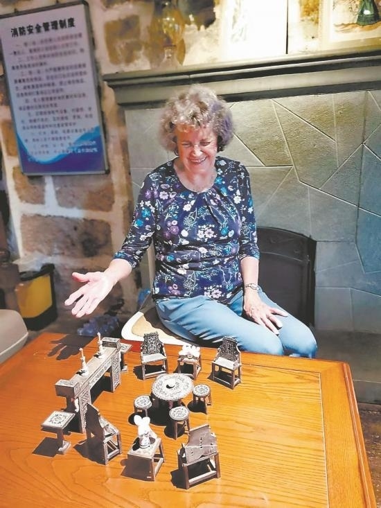“祖輩生活過、留下痕跡的地方就是家,我們這次是送老物件回家?!蹦卵造`是穆藹仁的兒媳,她這次帶來了三大箱的藏品,并在現(xiàn)場展示了家族在鼓嶺使用過的有著中國青花元素的蒂凡尼瓷碗。程高登捐贈的是其父在90歲高齡時編寫的家族史,書中部分情節(jié)詳細介紹了20世紀(jì)的鼓嶺生活。來自蒲天壽家族的祖孫二人蒲光珠和凱茜,捐贈的是當(dāng)年家族在鼓嶺避暑時所租住房產(chǎn)的地契原件,還有一本其家族成員編纂的小說,里面也有對鼓嶺生活的生動描述??轮救实膶O女畢樂華捐贈了整套迷你版的石制中式家具擺件,這是畢樂華媽媽當(dāng)年愛不釋手的藏品,也常被兒時的畢樂華用來過家家。