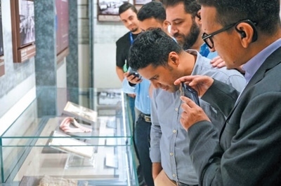 阿拉伯國家外交官在中共一大紀(jì)念館的展品前駐足觀看。方盈眾攝