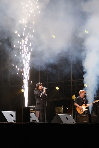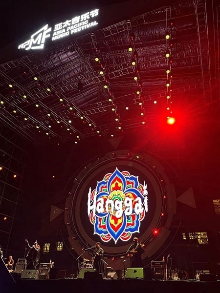 中國(guó)金屬硬搖滾樂(lè)的先驅(qū)——面孔樂(lè)隊(duì)演唱了《英雄》《幻覺(jué)》等經(jīng)典歌曲,讓人夢(mèng)回青蔥歲月。當(dāng)熟悉的《愛(ài)不愛(ài)我》響起時(shí),全場(chǎng)觀眾都在齊聲合唱,周曉鷗也帶來(lái)了多首自己的新歌。羅琦的《我是一只小小鳥(niǎo)》瞬間激起了所有樂(lè)迷的熱情。王北車與觀眾開(kāi)展了近距離互動(dòng),觀眾伴隨著音樂(lè)搖擺吶喊,掀起一波又一波熱潮。來(lái)自草原的杭蓋樂(lè)隊(duì)一上臺(tái)就引起了觀眾的熱烈反響,蒙古民間音樂(lè)與搖滾樂(lè)在草原激情碰撞。舞臺(tái)上,音符律動(dòng)、唱跳狂嗨;舞臺(tái)下,尖叫不斷,釋放激情。
