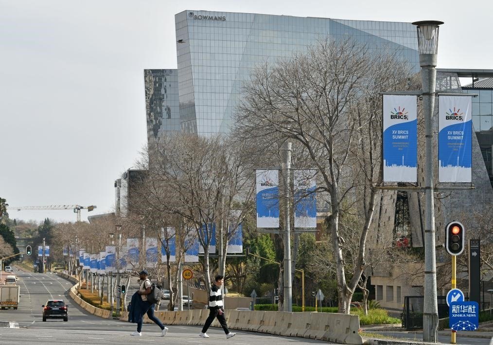 這是8月17日在南非約翰內斯堡拍攝的金磚峰會條幅。新華社記者 陳誠 攝