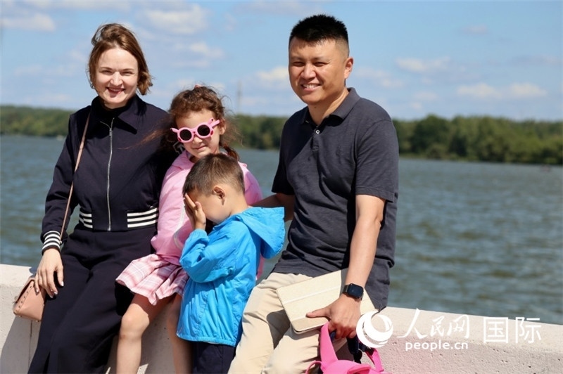 邢亮與妻子娜斯佳還有孩子們?cè)诤吷⒉?。人民網(wǎng)記者 朱虹攝
