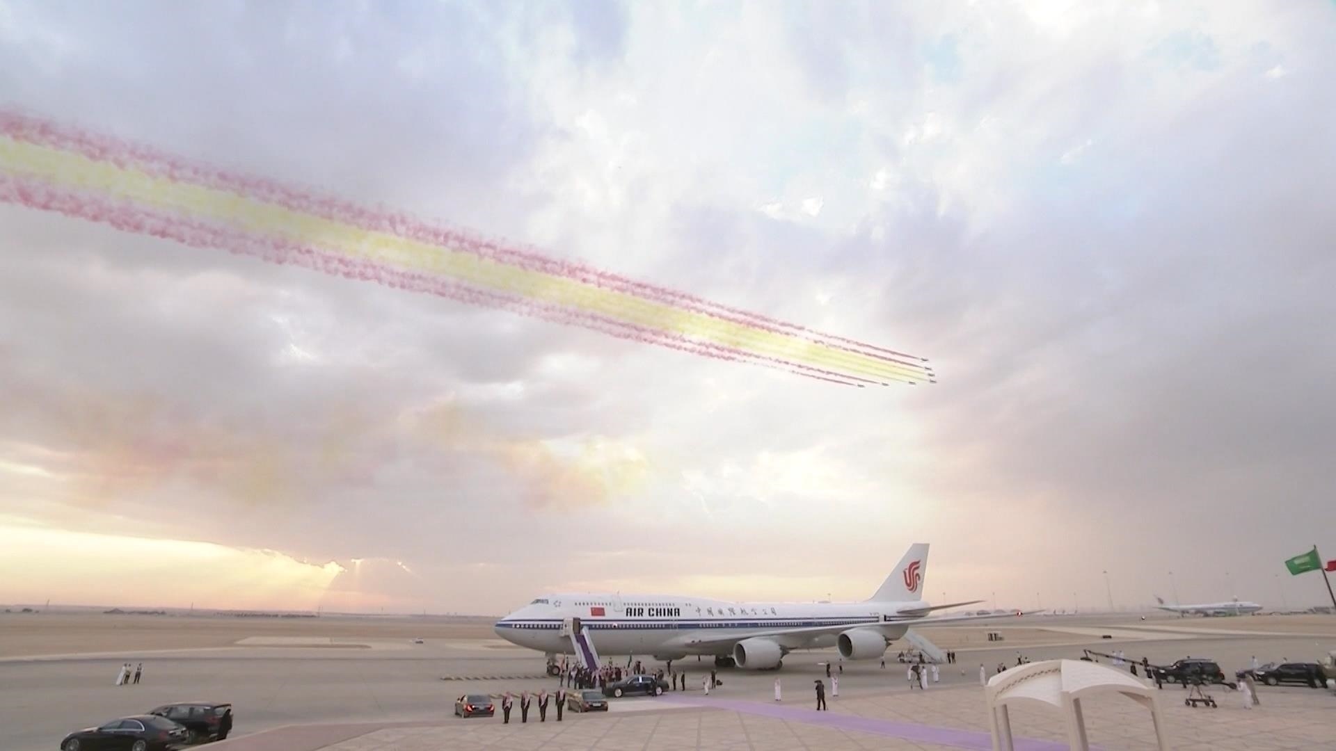 過去7年,在兩國元首共同推動下,中沙務(wù)實合作迅猛發(fā)展。2022年12月,時隔6年,習(xí)近平主席對沙特再次進(jìn)行國事訪問。當(dāng)習(xí)近平主席乘坐的專機進(jìn)入沙特領(lǐng)空,沙特空軍4架戰(zhàn)機升空護(hù)航,禮賓護(hù)衛(wèi)機在空中拉出象征中國國旗的彩帶,沙特用最高禮遇迎接來自中國最尊貴的客人。