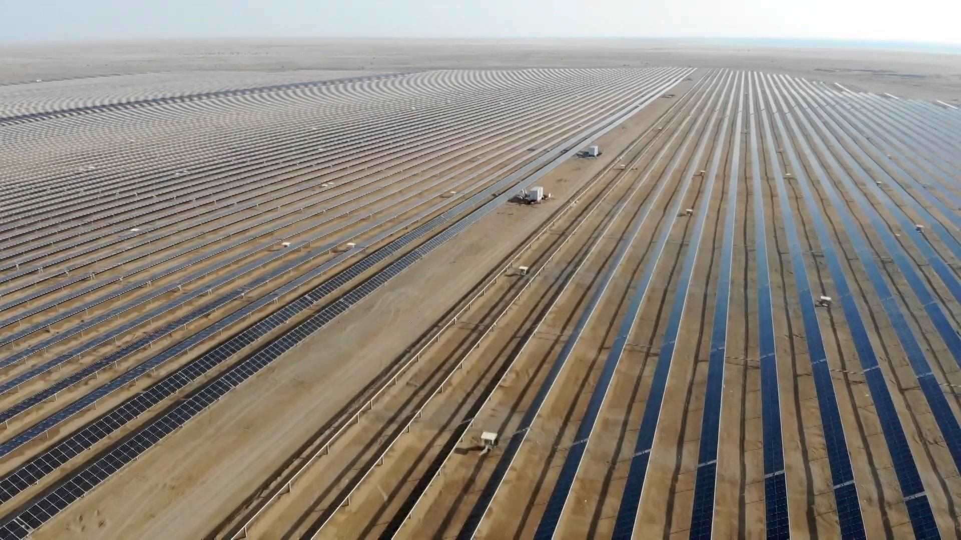 紅海之濱,中沙正攜手在沙漠里打造一座未來之城。紅海新城,是中沙在綠色低碳領(lǐng)域重點合作項目,未來這里的電力供應(yīng)將100%來自清潔能源。在中國企業(yè)建設(shè)的其中一個光伏廠區(qū)內(nèi),4068排光伏板整齊排列,24小時不間斷為新城提供可再生能源。針對當(dāng)?shù)厣硥m頻繁的天氣,中國企業(yè)還專門設(shè)計了自動清掃機器人。