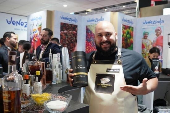 11月7日,展商在第六屆進(jìn)博會國家展委內(nèi)瑞拉展臺展示朗姆酒。新華社記者 李夢嬌 攝