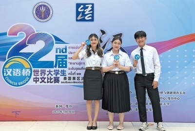 語言是了解一個國家最好的鑰匙。當(dāng)前,越來越多的外國人通過學(xué)習(xí)中文和參加“漢語橋”交流項目,了解到豐富多彩、立體全面的中國。圖為今年7月,部分參加第二十二屆“漢語橋”世界大學(xué)生中文比賽泰國賽區(qū)決賽的比賽選手在現(xiàn)場合影留念。