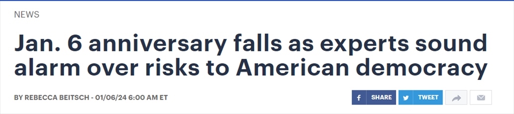 這項(xiàng)民調(diào)結(jié)果公布之時(shí),正值“國(guó)會(huì)山騷亂”事件三周年之際,美國(guó)也迎來(lái)新的選舉年。《國(guó)會(huì)山報(bào)》網(wǎng)站在6日的報(bào)道中再次提到,目前美國(guó)出現(xiàn)了一系列與民主狀況有關(guān)的令人不安的跡象。