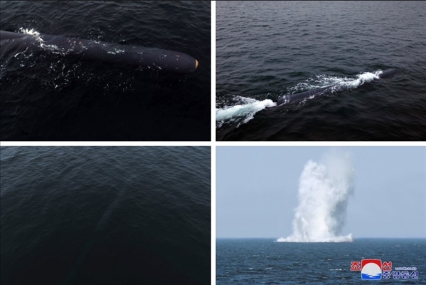 去年3月,朝鮮進(jìn)行了一系列軍事訓(xùn)練活動(dòng),包括新型水下攻擊武器系統(tǒng)試驗(yàn),其中,“海嘯”的核無(wú)人潛水攻擊艇首次亮相。試驗(yàn)在朝鮮咸鏡南道利原郡海岸進(jìn)行,在80米至150米深度潛航了約59小時(shí),最后到達(dá)假想敵人港口的洪原灣水域目標(biāo)點(diǎn)爆炸。一個(gè)月后朝鮮公開了“海嘯-2”型核無(wú)人潛水攻擊艇,朝方稱,該艇進(jìn)行了71小時(shí)、1000千米的潛航試驗(yàn),驗(yàn)證了潛水式戰(zhàn)略武器系統(tǒng)的可靠性和致命打擊能力。